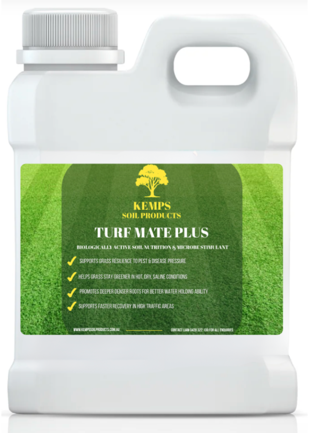 Built for golf greens and sports fields, easy enough for home lawns. Turf Mate Plus is a biologically active concentrate that feeds the root zone with small peptides, aminos and fulvics, plus chelated iron for a fast, clean colour lift without surge growth. It wakes up soil biology, drives deeper, denser roots and helps turf stay resilient in heat, dry or saline conditions.